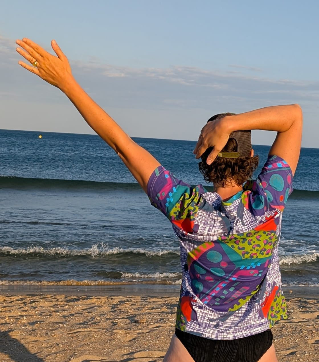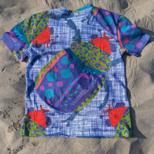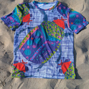 Parrtykäfer on Tour! Auf loose Fit T-Shirt als multicolor Print allover.